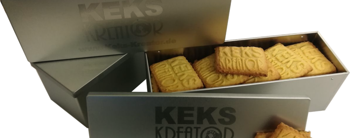 Ab jetzt neu im Sortiment, euer Logo, Slogan, Gruß oder Motiv auf unseren kleinen Kekstruhen graviert. So bekommen eure personalisierten Kekse, Logokekse oder Firmenkekse noch ein weiteres Highlight verpasst. Das ideale Giveaway, Kunden- oder Gastgeschenk. Euer gestalteter Keks in der eigens gestalteten Dose der perfekte Hingucker.