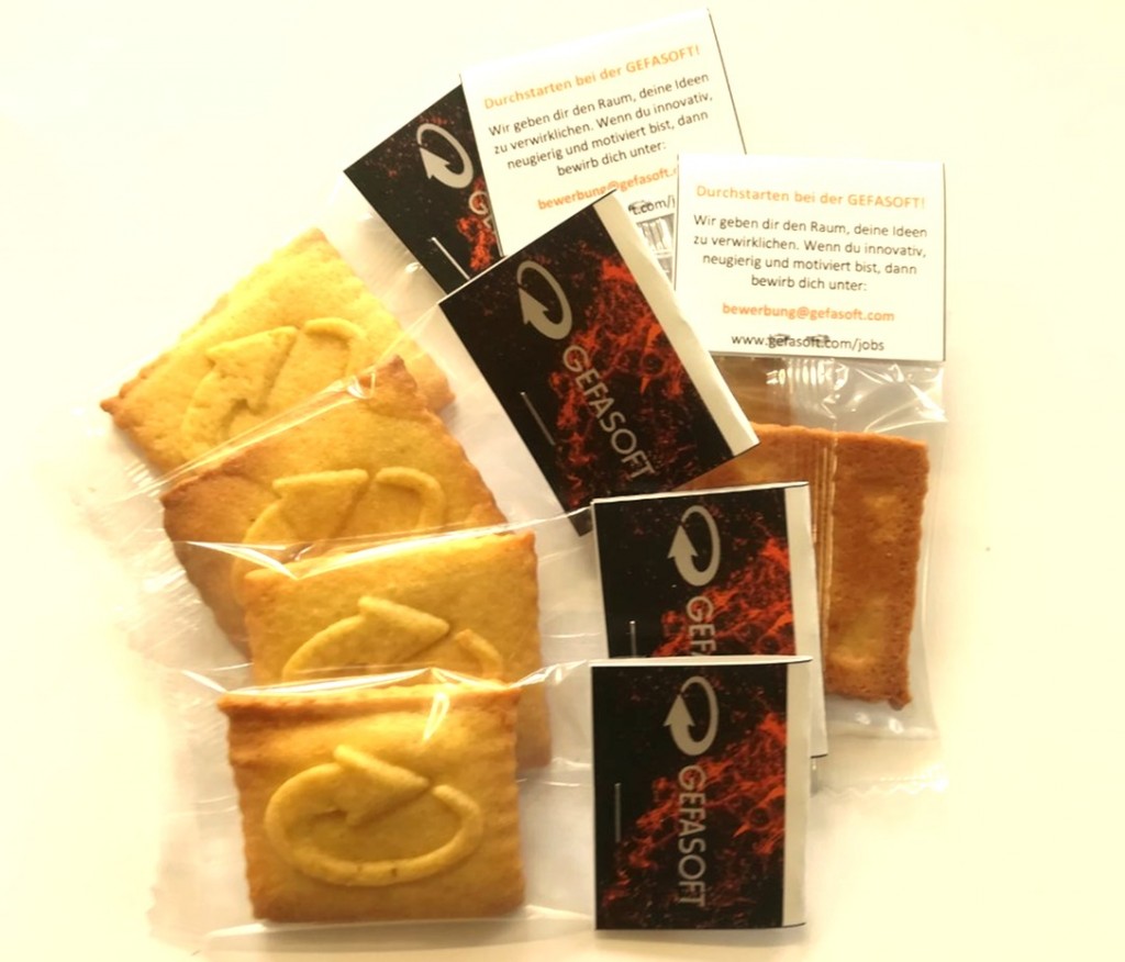 In unserem Konfigurator findet ihr eine Vielzahl an Ideen für euren individuellen, persönlichen Keks. Einzeln verpackt oder in einer Schmuckdose. Auch als Logokeks für euer Jubiläum oder als Eisbrecher im Kundengespräch. Unsere Firmenkekse mit eurem Logo sind das perfekte Goodie für eure Kunden, Gäste, Freunde oder Mitarbeiter.
